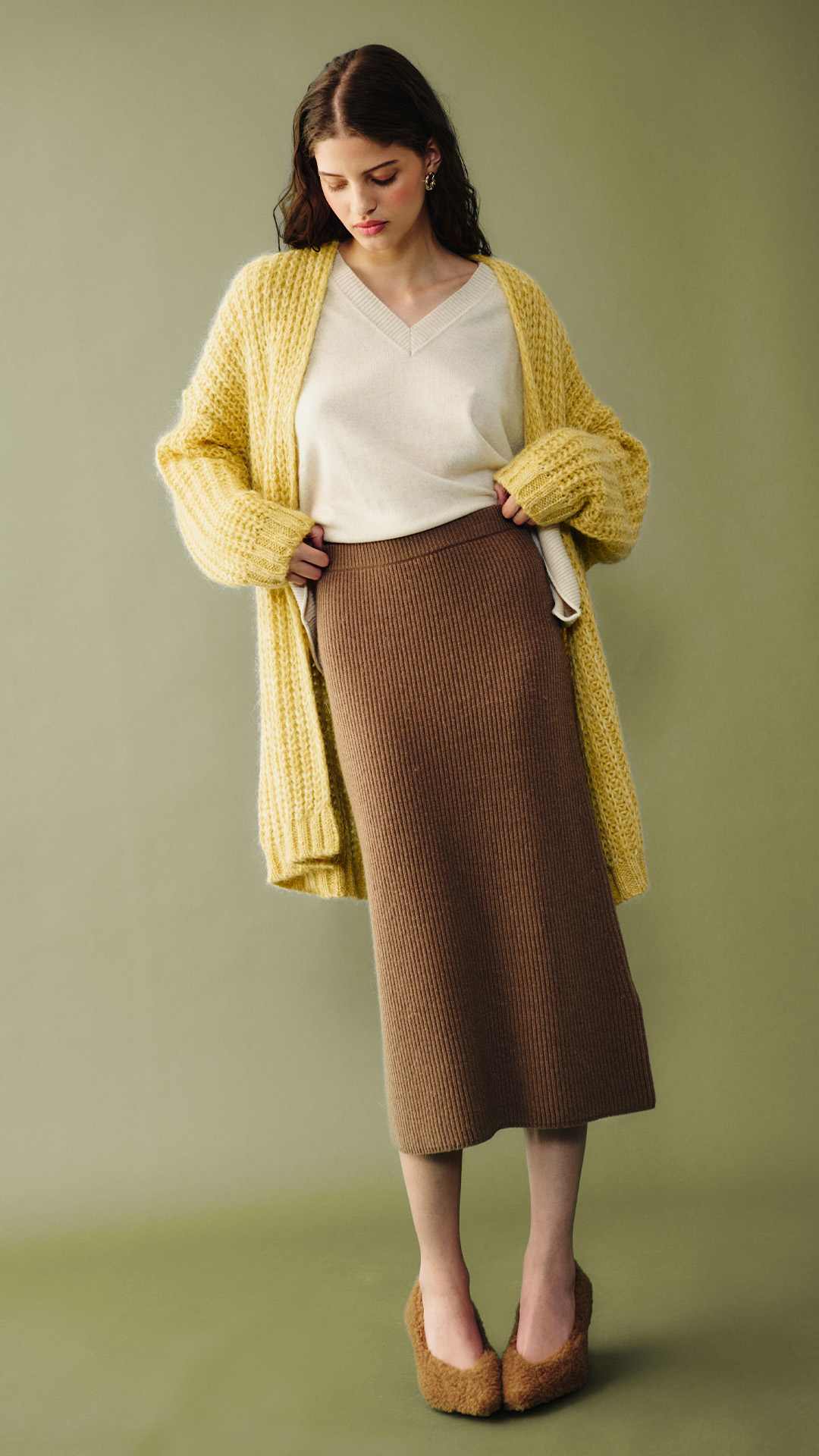 A versatile palette that suits every piece: from soft sweaters to our tailored coats, from fluid skirts to trousers that define the silhouette.