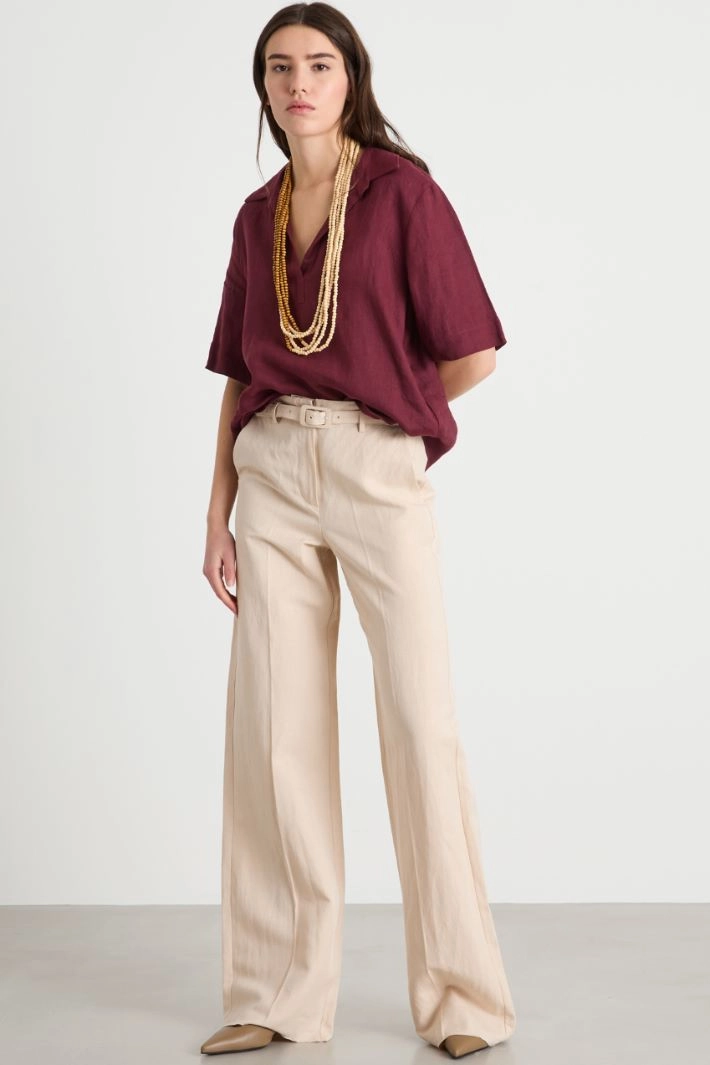 Relaxed-fit polo shirt crafted in pure linen canvas, featuring a pointed collar, a V-neck and short sleeves.