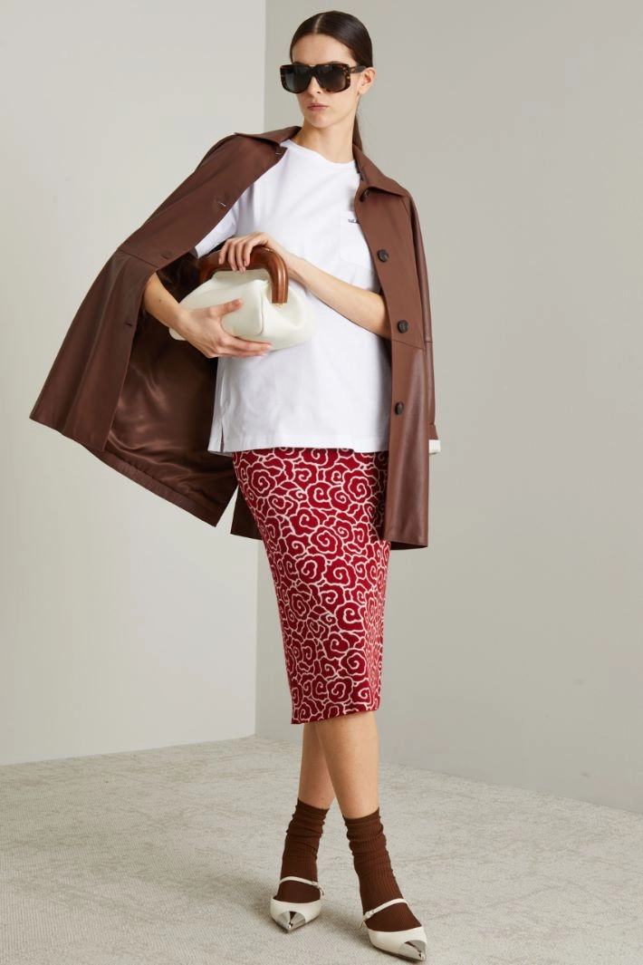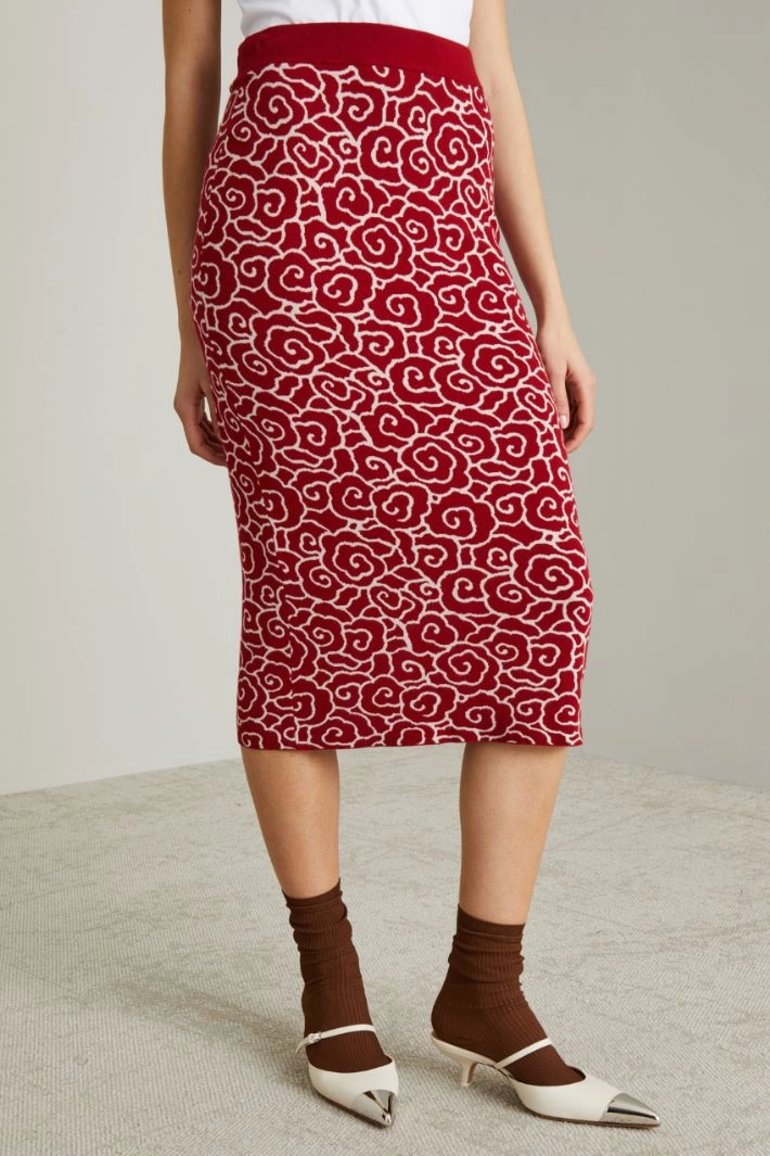 Straight-fit skirt in stretch viscose jacquard knit, with elastic waistband.