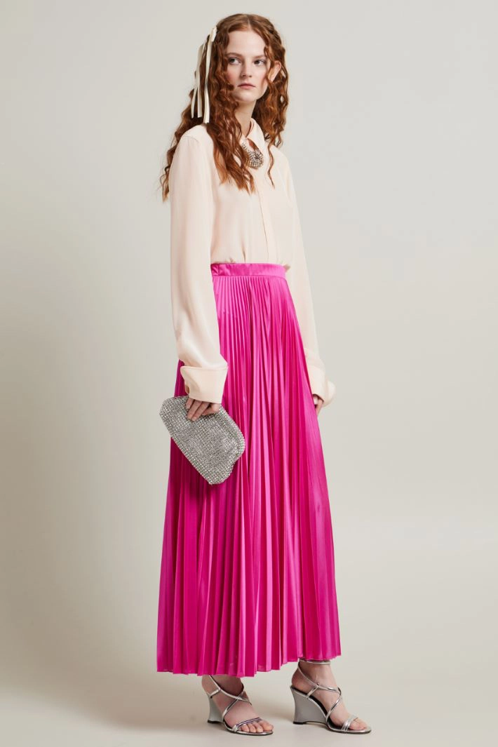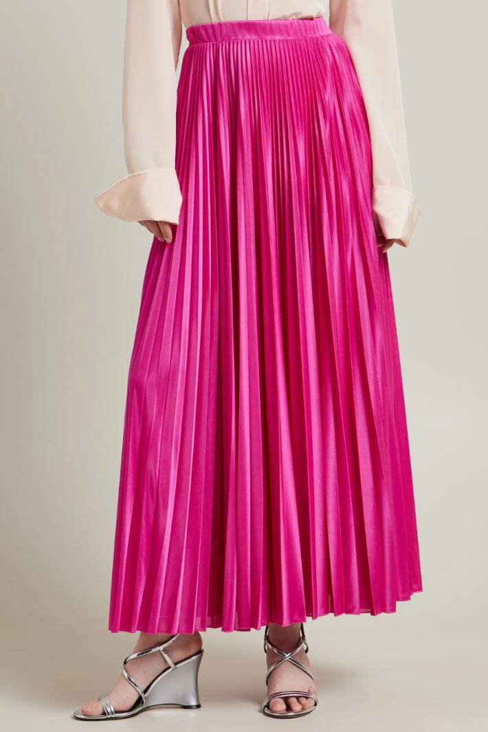 Maxi circle skirt in pleated jersey with an shiny finish, with elastic insert at the waist.