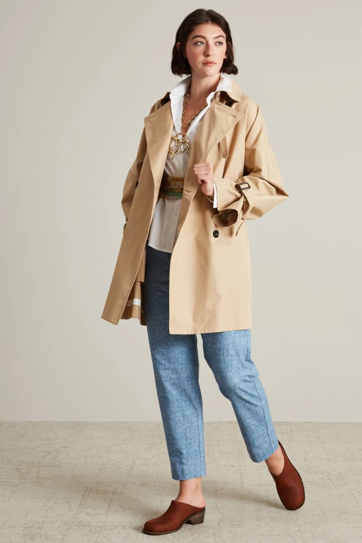 Slightly baggy trousers in printed stretch cotton jersey, with drawstring waist, French side pockets and welt pockets on the back.